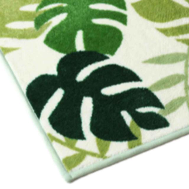 華やかなデザインがおしゃれなモンステラ柄のバスマットです。サイズは45×60cmです。毛足はほど良い短さで足ざわりサラサラです。