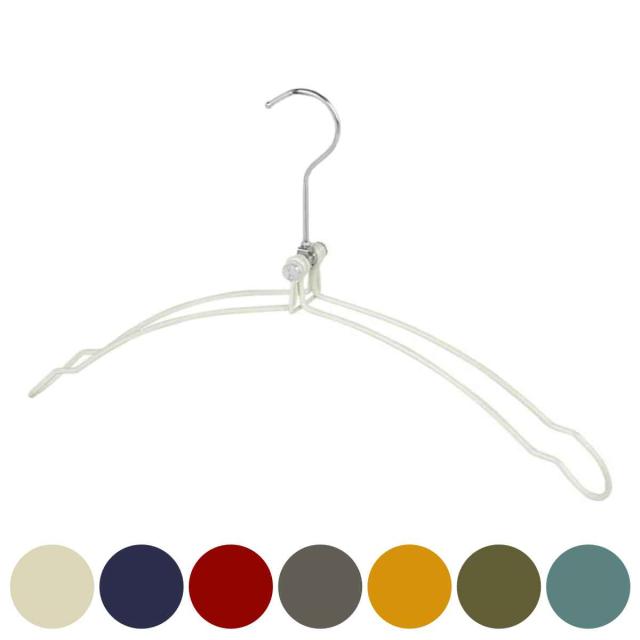 持ち運びに便利な折りたためるハンガーです。ハンガーを広げると4.7cmの隙間があるので、型崩れが気になる衣類をかけたいときに最適です。また風が通りやすいので衣類が乾きやすくなります。使わないときはコンパクトに折りたためば場所を取りません。