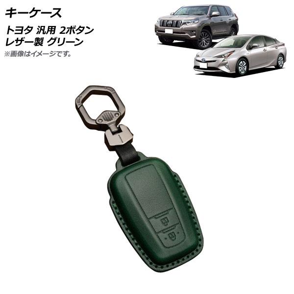 キーケース グリーン 2ボタン レザー製 カラビナ付き トヨタ 汎用 入数:1セット AP-AS678-GR