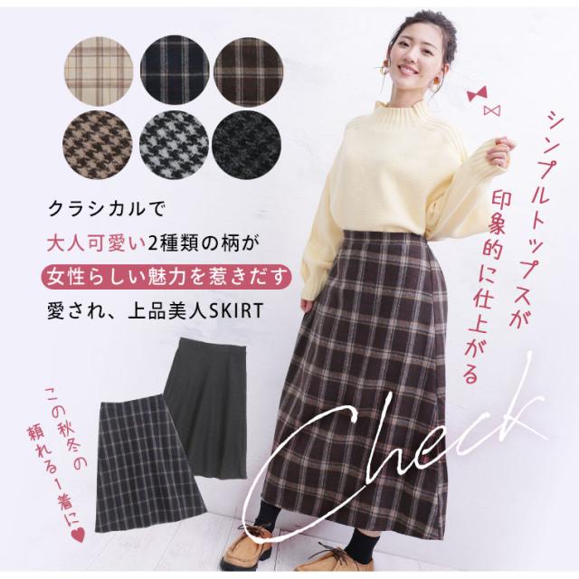 チェックと千鳥から選べる大人のかわいいフレアスカート
