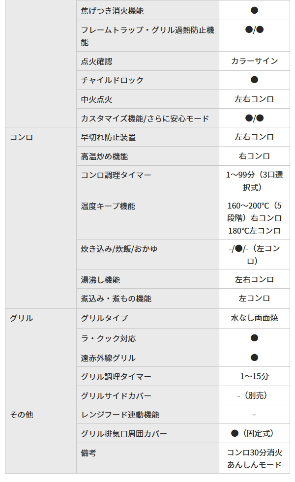 - シンプルでスタイリッシュな調理機能が充実した使いやすいコンロ。