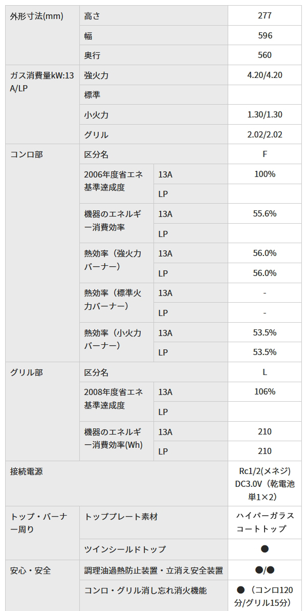 - バーナーまわりの焦げつきを低減するヒートカットトップ仕様。
