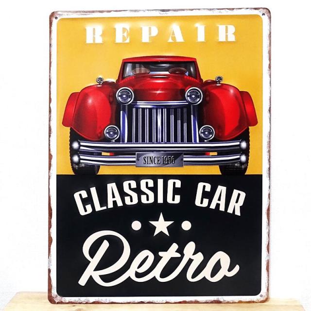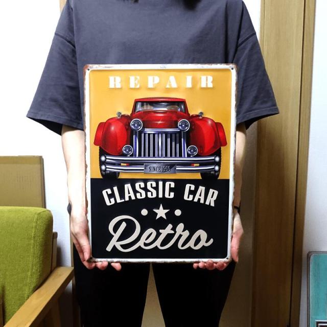 ブリキ看板 アンティーク CLASSIC CAR RETRO ビンテージ クラッシックカー ガレージ 車 プレート カー 壁飾り かわいい アメリカン 雑貨
