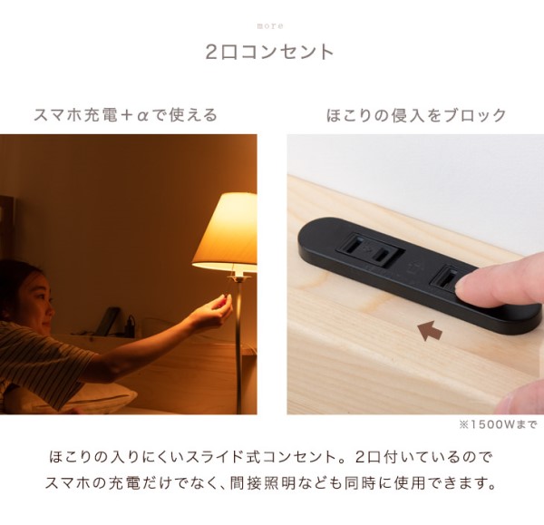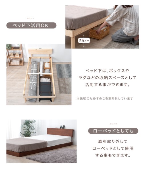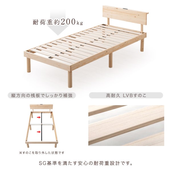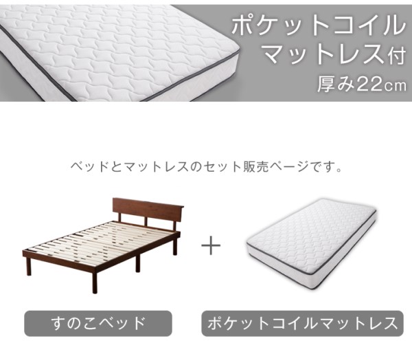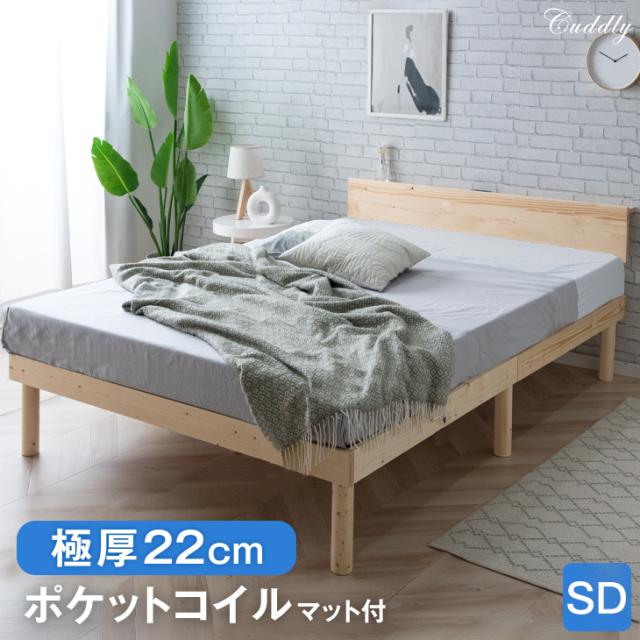 セミダブルベッド マットレス付 宮棚&2口コンセント すのこベッド ベッド セミダブル フレーム マットレス付き ベッドフレーム ポケットコイルマットレス スプリングマットレス ポケットマットレス 宮棚付き