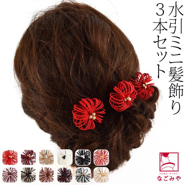 和装 髪飾り 成人式 振袖 通年用 日本製 水引 ミニ 3本セット Uピン 付け足し 礼装 おしゃれ レディース 女性 女の子 女児10023282