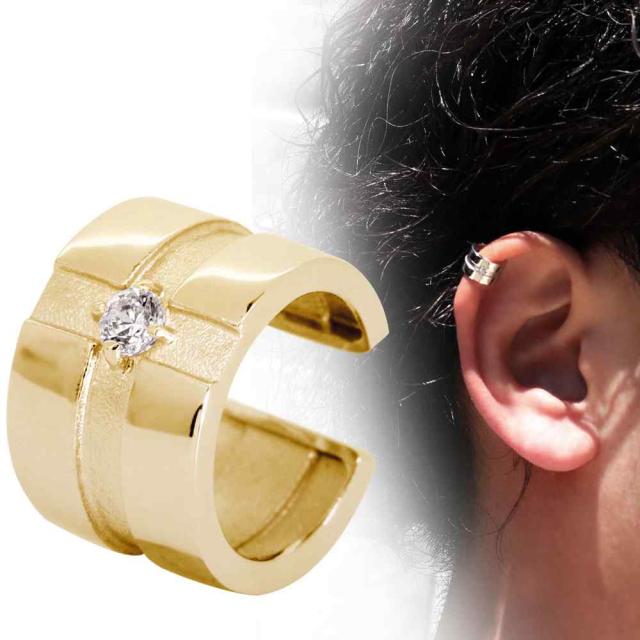 イヤーカフ メンズ クロス 十字架 イヤカフ 片耳用 ダイヤモンド 4月誕生石 10金 軟骨