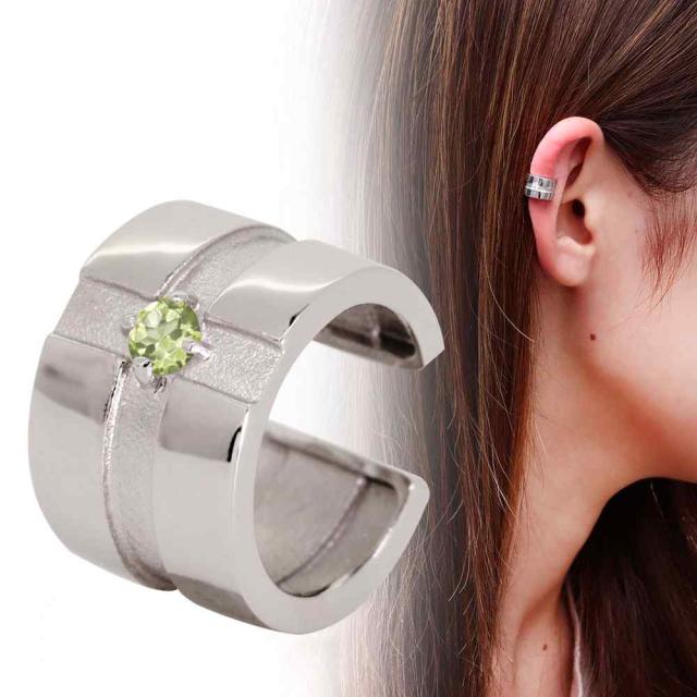 クロス イヤーカフ レディース プラチナ 誕生石 8月 ペリドット イヤカフ 片耳用 十字架