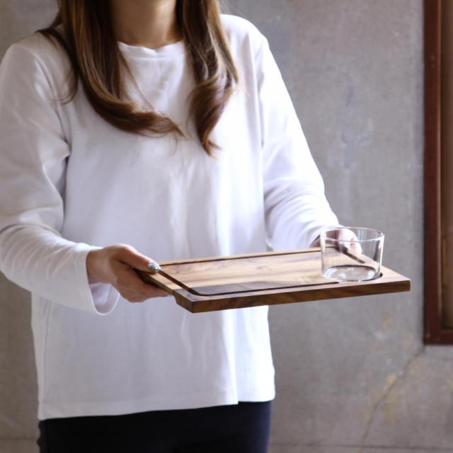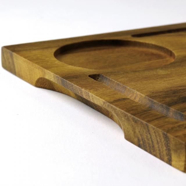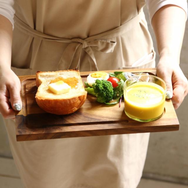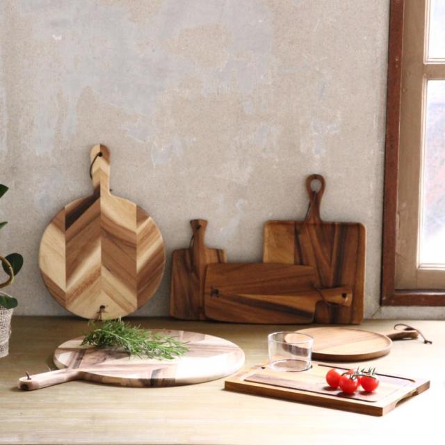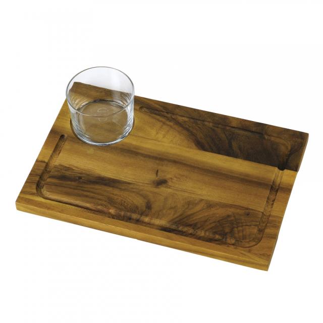 ■上質なアカシアウッドのキッチンアイテム。ガラスの器がセットになったプレートです。