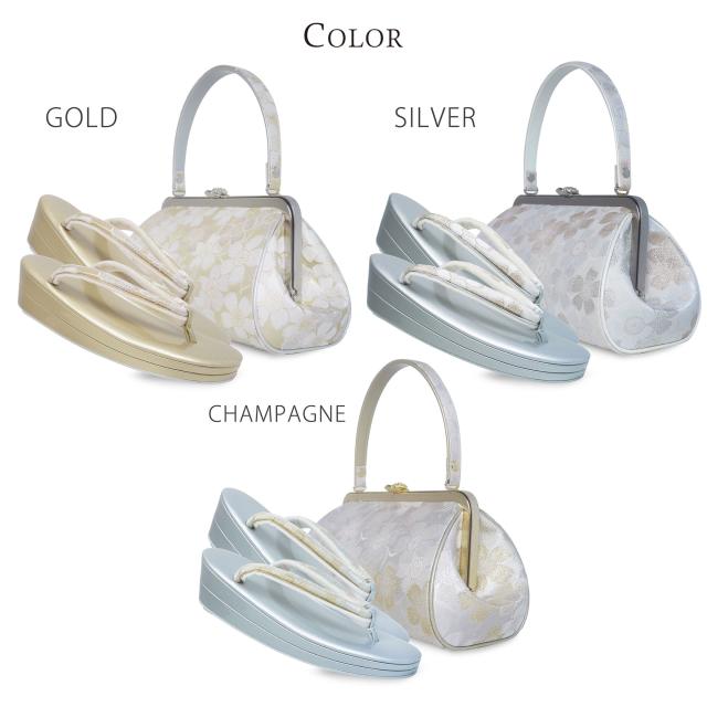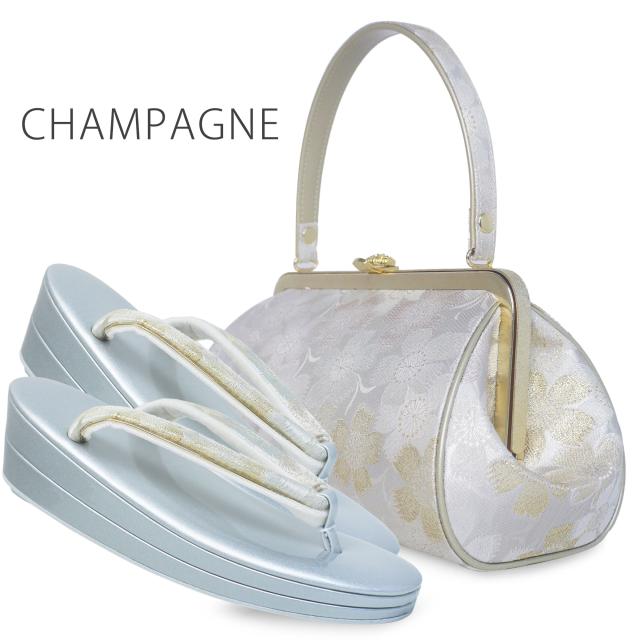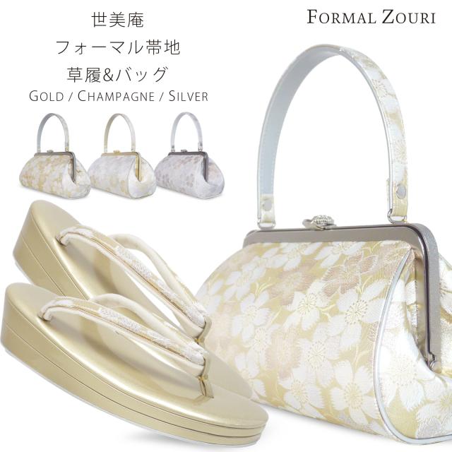 世美庵 ブランド フォーマル 高級 帯地 草履 バッグ セット 選べる 3色 金 銀 ゴールド シルバー シャンパン フリーサイズ Lサイズ 桜 光沢有り バック 留袖 訪問着に最適 日本製【成人式 前撮り 結婚式 結納 卒業式 入学式】