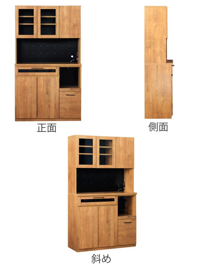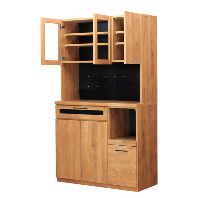 キッチンボード ヴィンテージ調 NEITS 約幅105cm ( カップボード キッチン 収納 レンジ台 食器収納 日本製 完成品 コンセント付き 棚 家電収納 木目調 国産 引出し )