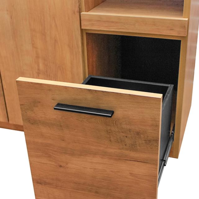 リアルな質感がヴィンテージスタイルにぴったりなキッチンボードです。無駄のないシンプルなデザインがスタイリッシュで、木目調と黒スチール取っ手の組み合わせが大人な印象です。