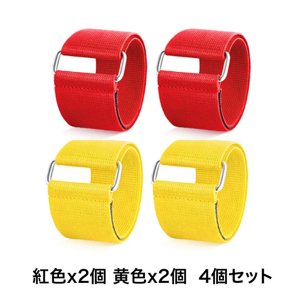 サバゲー ゲームマーカー 4本セット アウトドア 面ファスナー式 5cm×50cm マーカー アーム ベルト バンド 伸縮 固定 タイプ 運動会 グループ チーム分け 識別 目印 バンドル 簡単脱着 (赤2本 黄2本)