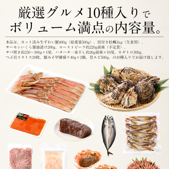 福袋 10種入り カニ 牡蠣 いくら醤油漬け ローストビーフ 鯖 ハタハタ ネギトロ 粒貝 蟹みそ 甘エビ ギフト プレゼント