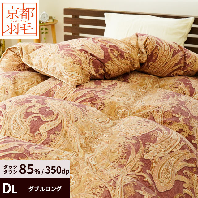 羽毛布団 ダブル ダブルロング 京都羽毛 日本製 ダウン85% 190×210cm 掛け布団 ホワイトダックダウン 1.3kg 立体キルト 羽毛