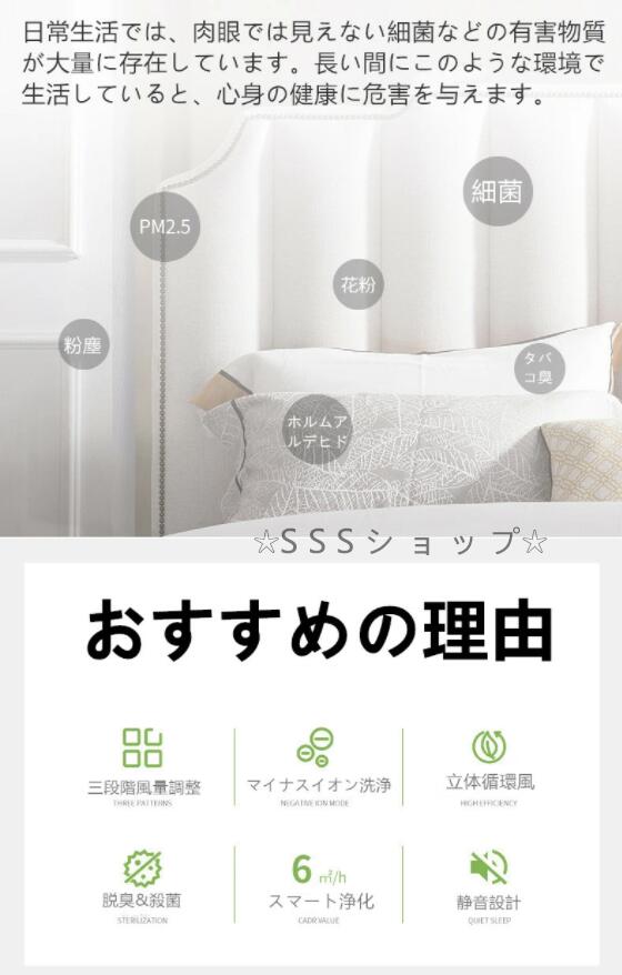 1人暮らしの6畳程度の部屋だととても適用です。車やベビー室や玄関や寝室などの小空間での使用をお勧めします。強・中・睡眠の3種類のモードで風量を調節でき、お部屋の状況に合わせて様々な選択肢を提供します。