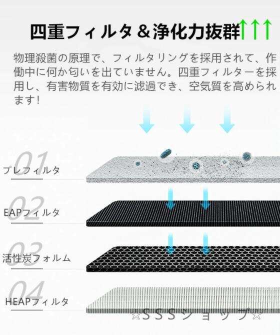 弱モードで気づかなくほどの運転音、睡眠の浅い人にも影響がない、毎晩ぐっすりと寝ましょう。低ノイズ技術により、動作音は他の空気清浄機よりもはるかに低くなり、ミュートモードでの動作音はわずか30dBです。