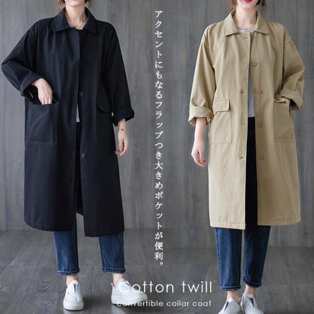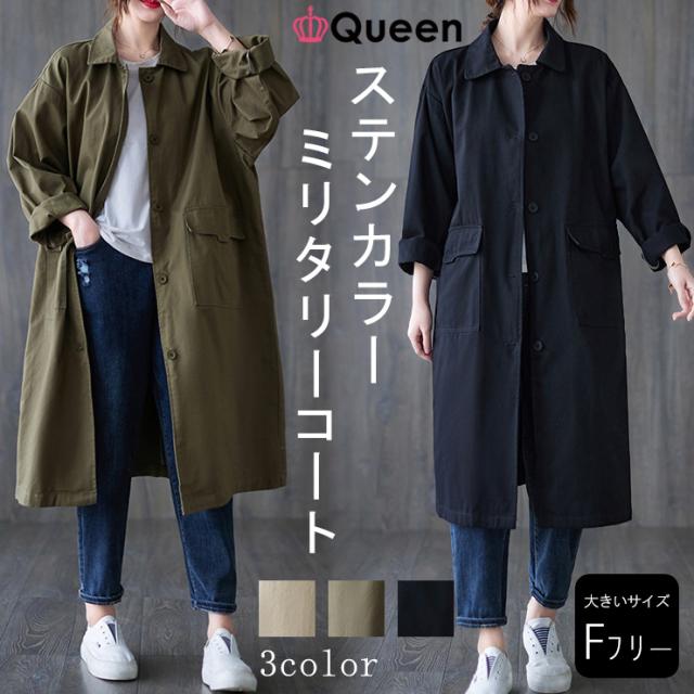 大きいサイズ レディース ステンカラーコート オーバーサイズ ライトアウター 前ボタン 春 秋 (1149131)