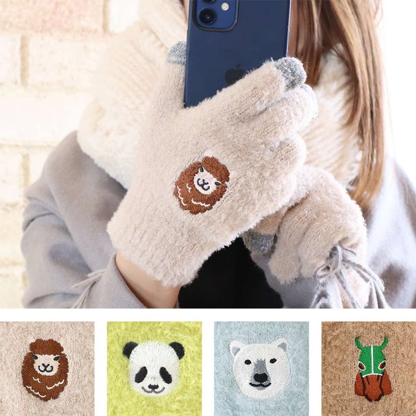 アルパカ ウマ グッズ スマホ手袋 パンダ もふもふ 癒し かわいい 秋冬