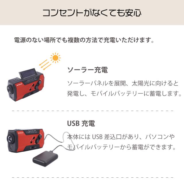 多機能防災ラジオライト【10年保存電池付き】 タイプ別USBコネクタ付 電池使用可 LEDライト ソーラー充電 AM/FM ワイドFM サイレン 新型エマージェンシーラジオ BR001 単品 3カラー ソーラー充電 手回し充電 ダイナモ充電 ライト 非常用 停電