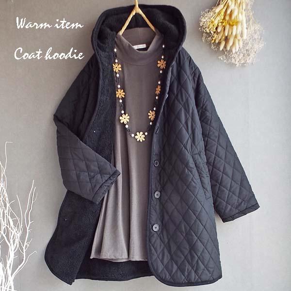 コート レディース 裏ボア キルティング フード付きコート アウター 大人 きれいめ 秋 冬 40代 50代 体型カバー s3417