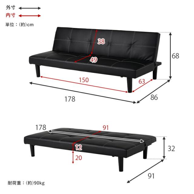 (約)幅178×奥行86〜91×高さ68〜32×座面高32cm