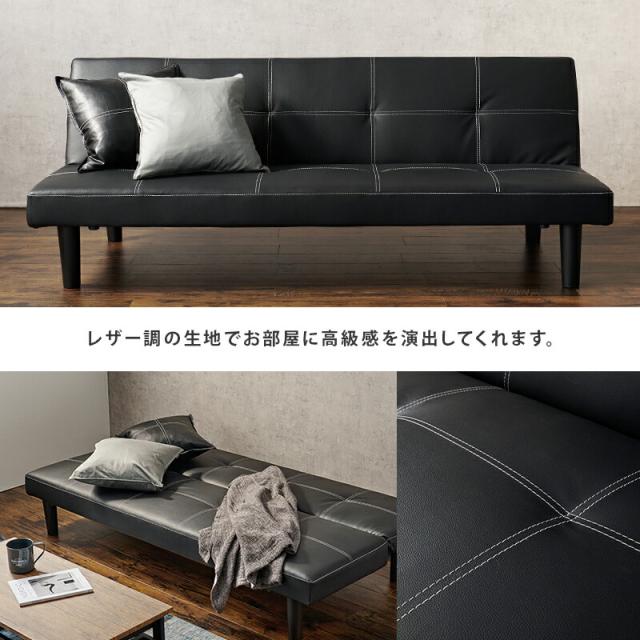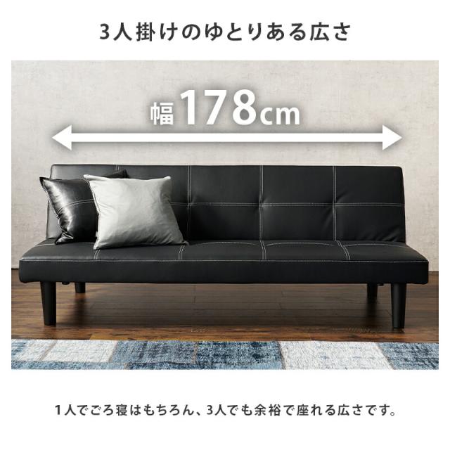 【送料無料】2WAY ソファーベッド 3人掛け シングルベッド シングルサイズ 客部屋 ブラック シック シンプル ベッドになるソファ ローソファ