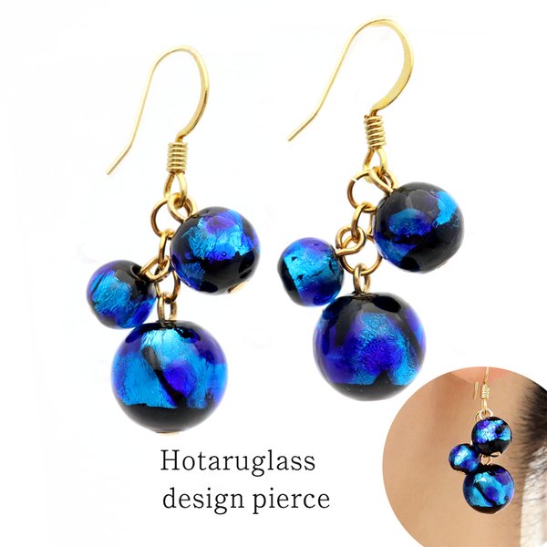 ホタルガラス ピアス 両耳用 ぶどう房型 ブルー 青色 とんぼ玉 沖縄 お土産 アクセサリー 送料無料 母の日 ホワイトデー プレゼント お返し