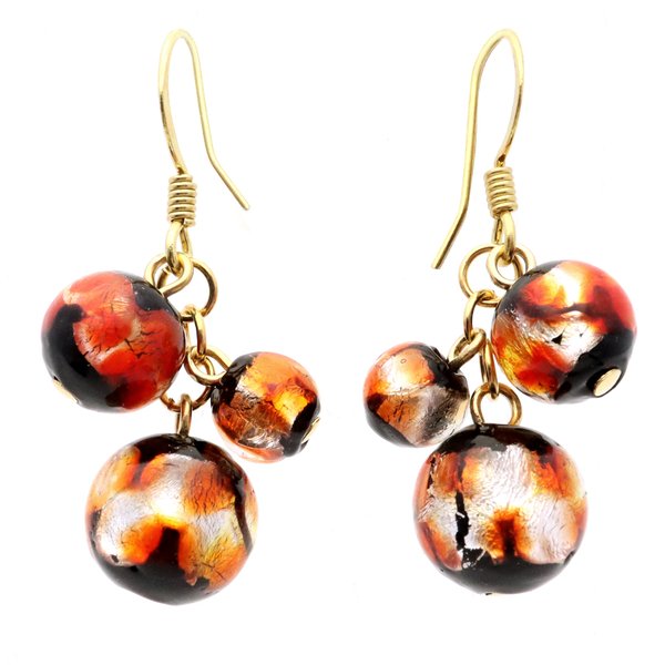 ホタルガラス ピアス 両耳用 ぶどう房型 オレンジ とんぼ玉 沖縄 お土産 アクセサリー