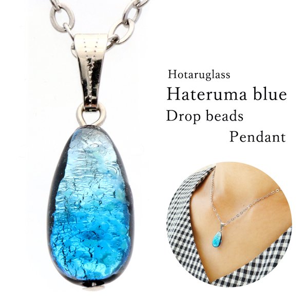 ホタルガラス ネックレス ハテルマブルー 光る しずく ドロップ ペンダント 沖縄 お土産 とんぼ玉 琉球