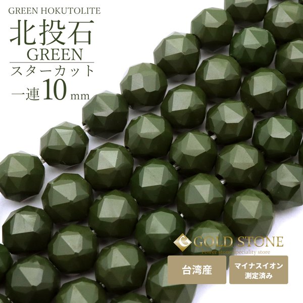 北投石 一連 ビーズ スターカット 10mm 長さ 約40cm 緑色 台湾産 マイナスイオン測定済み ラジウム グリーン ホクトライト