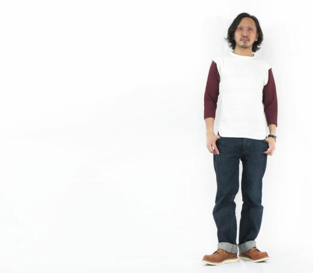 ■ウェアハウス WAREHOUSE 7分袖 Tシャツ ベースボール プレーン 無地 WH4800![]() <モデル 身長175cm 体重60kg M着用>ノンウォッシュ状態で着用している為、ウォッシュ後縮みが生じます。 ウエアハウスの定番生地ともいえる、12番のムラ糸、天竺ボディを使用したベースボールシャツです。 自然なムラ糸を再現した単糸はそれだけで風合いがあり、 独特の緩い編み方をすることで生地に横段のようなムラが生まれます。 セットインスリーブで切り替えになっている野球のアンダーシャツの仕様は、ユニフォームを上から重ねるために 生まれたものですが、カジュアルに一枚で着られるよう、フロントにプリントを施しています。 裾のパイピングは洗濯や着用中に裾がロールしてしまわないように、丁寧に処理されています。 ※本製品は未洗いです。通常の洗濯でワンサイズ程度の縮みが生じます。 タンブラー乾燥はさらに強い縮みが生じますので、お勧めできません。 ![]() 1995年の創立以来、ファッションという流行に左右される業界に在りながら、決してそれに流されない、 「ヴィンテージ古着の忠実な復刻」というテーマを追い続けているブランドです。縁あって出遭った一着のヴィンテージを、それが生産された時代の背景を考察し、 糸の一本から生地、縫製、そして洗い加工にいたるまで、徹底的に研究しています。 ![]() ![]() ![]() ![]() ![]() サイズ詳細 サイズの計測方法についてはこちらをご覧ください。 素材 コットン100% カラー クリーム×ネイビー ヘザーグレー×ブラッククリーム×ボルドークリーム×Lグリーン 生産国 日本 備考 ※こちらの商品は未洗いのため身幅(2cm)、着丈(4〜5cm)程度の縮みが生じます。 また個体差により前後する可能性がございますのでご了承くださいませ。 サイズは実寸を計測し平均値を記載しております。若干の個体差はございますので、ご了承ください。 商品に関して 当店の取り扱い商品はヴィンテージアイテムをベースとしたデザインの商品が多数ございます。雰囲気を重視するために若干の縫製のずれ、生地の色合いや加工による風合い、色ムラなど、仕上がりが異なる場合もございますが、それらも商品の魅力としてご理解下さい。また商品の仕様(縫製・パーツ・色合い・サイズ等)は予告なく変更される場合がございます。以上の点をご理解いただいた上でお楽しみいただければ幸いです。 |