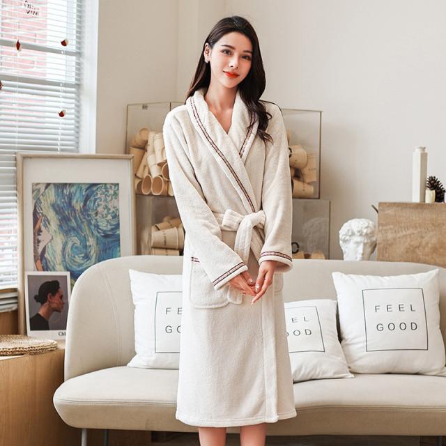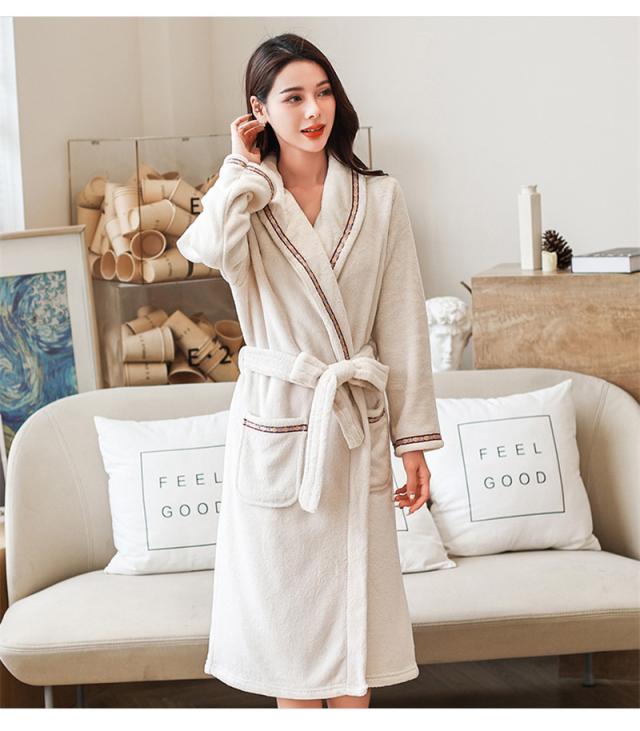 ネグリジェ パジャマ レディース ガウン ルームウェア ロング 長袖 フランネル 前開き 浴衣 もこもこ 厚手 暖かい 速乾 バス