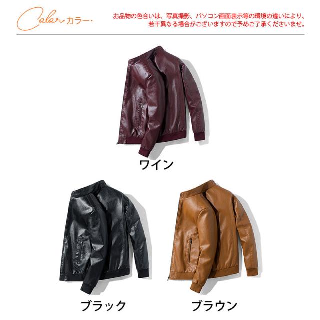 ライダースジャケット メンズ 革ジャン レザージャケット アウター コート スタンドカラー カジュアル 無地 ゆったり 高級感 防
