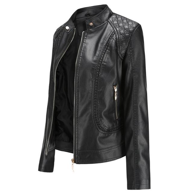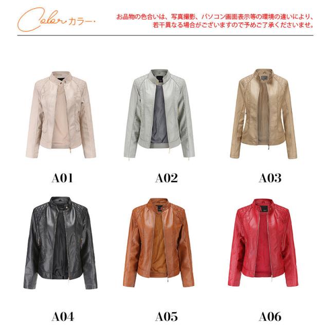 革ジャン レザージャケット レディース ブルゾン ライダースジャケット スタンドカラート ステッチ PU カジュアル 立ち襟 着