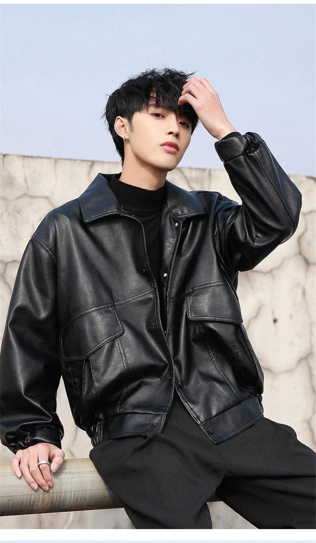 ライダースジャケット メンズ 革ジャン レザージャケット アウター レザーコート 開襟 カジュアル シンプル ゆったり 防風 韓国