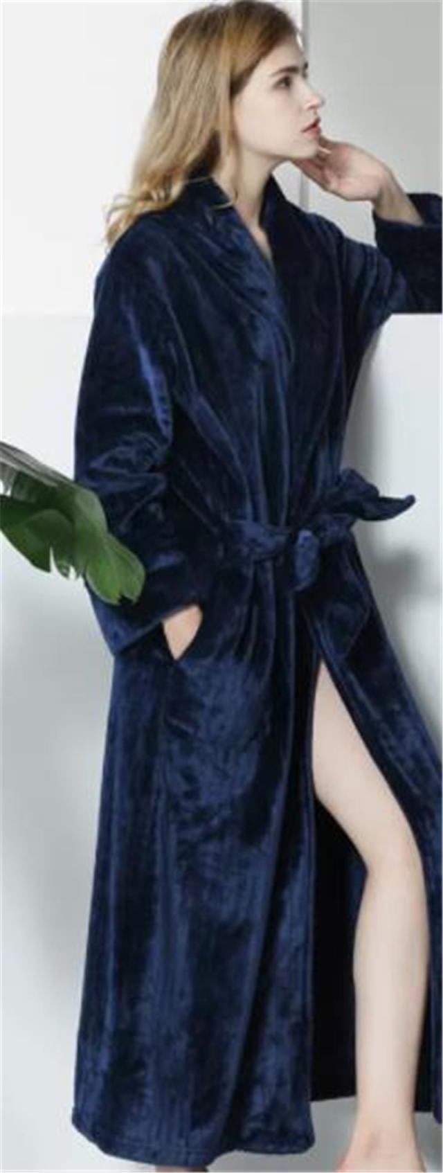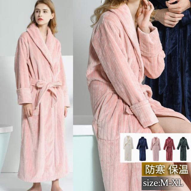 ネグリジェ パジャマ レディース ロング丈 ガウン ルームウェア フランネル 浴衣 前開き もこもこ 厚手 暖かい 無地 バスルー