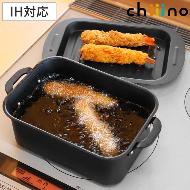 天ぷら鍋 角型 IH対応 鉄製 チーノ 19×12.5cm ( ガス火対応 オール熱源対応 蓋付き バット付き 揚げ鍋 揚げ物鍋 天ぷら用鍋 スクエア 長方形 角形 フライヤー フライ鍋 なべ お鍋 フタ付き 両手付き 鉄鍋 )