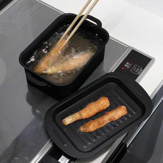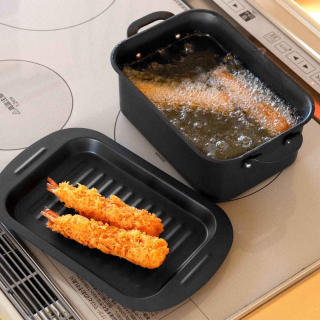 《 LH11061 LH10851 ihOK IH使える ガスOK 直火OK 角型天ぷら鍋 四角い 天婦羅鍋 蓋あり 受け皿付き 油少量 省エネ 熱伝導 小さい 小鍋 コンパクト ミニ 初心者 人気 便利 おすすめ 調理器具 キッチン用品 キッチングッズ キッチンアイテム キッチン小物 キッチン雑貨 》