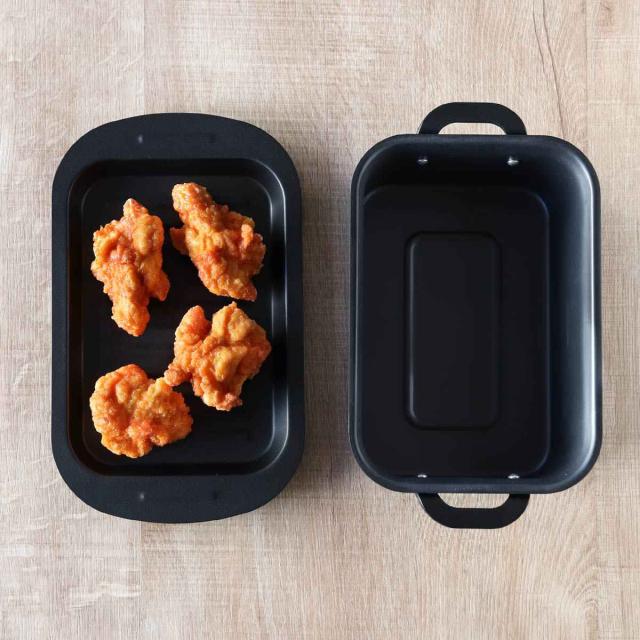 コンパクトな小さめサイズですが、長方型なのでとんかつ1枚がスッポリ入ります。狭いキッチンスペースでも邪魔にならないので、ひとり暮らしの方や毎朝のお弁当作りなどのちょこっと使いにピッタリです。