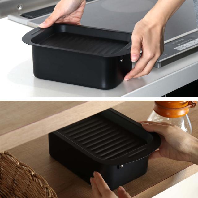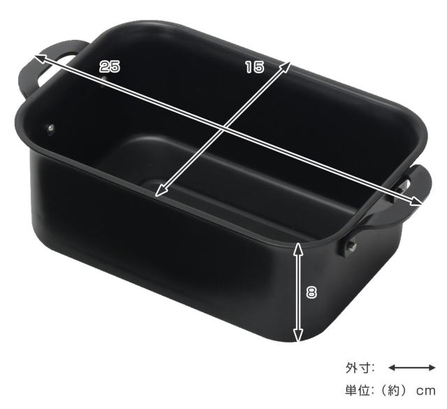 | サイズ | 約 幅25×奥行15×高さ8(cm) 蓋:約 幅25.5×奥行16×高さ1.5(cm) 収納時:約 幅25.5×奥行16×高さ8(cm) 鍋底の厚さ:約1.2(mm) |