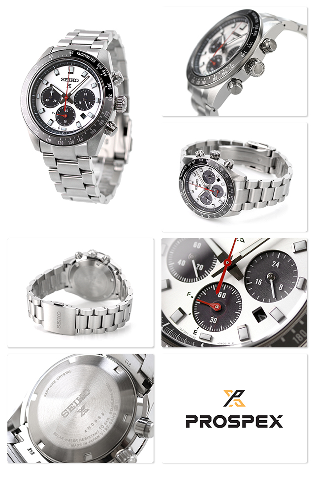 正規品 7年保証キャンペーン 送料無料 セイコー プロスペックス スピードタイマー ソーラークロノグラフ クロノグラフ 日本製 ソーラー メンズ 腕時計 SBDL095 SEIKO PROSPEX SPEEDTIMER アナログ シルバー ◆ソーラークロノグラフにSPEEDTIMER創成期を彩った60〜70年代の傑作アーカイブカラーモデルが登場。ヴィンテージ市場での評価も高いSPEEDTIMER傑作アーカイブモデルのアイコニックな意匠であるタキメーター表記の2色アルミ表示板ベゼルを継承。ブレスレットのラグからバックルにかけてのシェイプを効かせることで、高級感のある佇まいを実現。オリジナルモデルを想起させる力強い字分針とワイドなインデックスに塗布された12箇所ルミにより暗所での視認性が向上しております。年代問わずお使いいただけ、誕生日や記念日などのプレゼントにもおすすめです。 発売日:22年11月発売 パンダ ジャイアントパンダ 大谷翔平選手着用