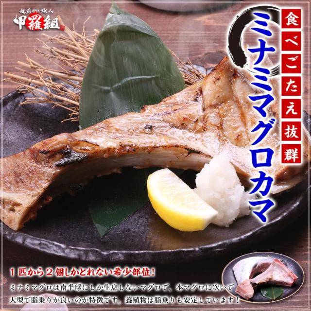 商品のポイント:マグロはお肉に比べて低エネルギーかつ高たんぱくでとってもヘルシー!DHAやEPAも摂取できる栄養満点の食材です。ミナミマグロ(インドマグロ)は南半球にしか生息しないマグロで、本マグロに次いで大型で、脂乗りが良いのが特徴です。天然物は脂乗りにバラつきがありますが、養殖(畜養)物は脂乗りが安定していてハズレがほとんどありません。マグロのカマは1匹から2個しかとれない貴重な部位!しかも大トロの隣の部位なので、脂乗りも抜群!ボリューム満点1個あたり400g前後なので、塩焼きや煮付けなどにすれば、お腹いっぱいフワフワな食感が楽しめます。