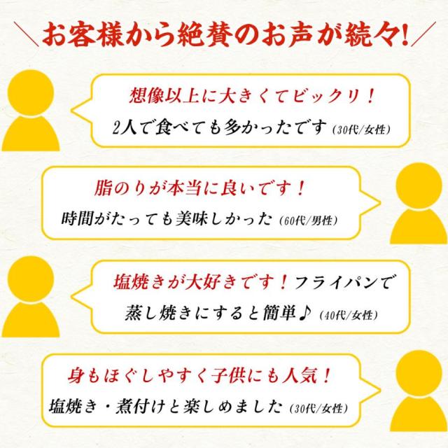 - 脂のりも良く 4個入っていて家庭のグリルで焼けるサイズ感 最高でした!お安く買えたので また狙います!