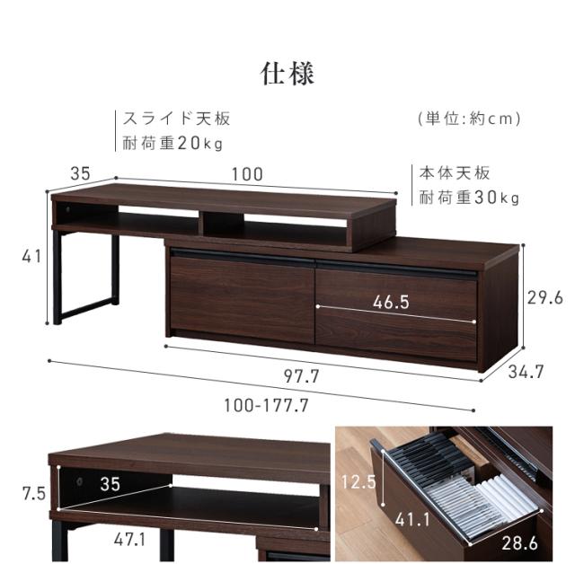 伸縮テレビ台 STS-100U-OWSTS-100U-WNSTS-100U-Bオフホワイトウォールナットブラック 全3色 伸縮 テレビ台 引出し付き TV台 ローボード TVボード テレビラック TVラック リビング 棚 ラック 台 アイリスオーヤマ 送料無料