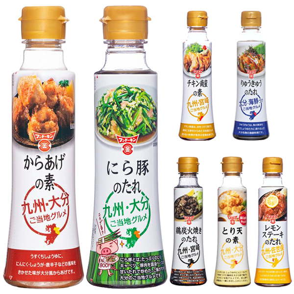 九州で人気のご当地グルメが手軽に作れる「九州ご当地グルメシリーズ」 ●にら豚のたれ にら豚とは、たっぷりのにら・キャベツ・豚肉を醤油ベースの甘いたれで炒めた、ご飯がすすむ大分のご当地グルメです。 ●りゅうきゅうのたれ りゅうきゅうは、魚の刺身を甘口しょうゆたれに漬け込んだ大分名物の漁師料理です。 ●レモンステーキのたれ レモンステーキとは甘酸っぱいレモン風味のしょうゆたれであっさり食べられる佐世保発祥の薄切りステーキです。 ●からあげの素 うすくちしょうゆに、にんにく・しょうが・唐辛子などの風味をきかせた味が大分風からあげです。 ●チキン南蛮の素 チキン南蛮は、衣をつけて揚げた鶏肉に甘酢をからめた洋食屋さんのまかない料理が発祥の宮崎名物です。 ●鶏炭火焼きのたれ 鶏炭火焼きとは、塩などで下味をつけた鶏肉を、炭火で燻しながら焼きあげる宮崎のご当地グルメです。 ●とり天の素 とり天とは、しょうゆやにんにくなどで下味をつけた鶏肉を天ぷら粉で揚げた大分のご当地グルメです。 手軽に!簡単に!そして美味しく! フンドーキン自慢のグルメシリーズを是非ご家族みんなでご賞味ください♪ 下記7種類の中から4本お選びいただけます 【対象商品】 ■にら豚のたれ/内容量:235g ■からあげの素/内容量:230g ■りゅうきゅうのたれ/内容量:230g ■チキン南蛮の素/内容量:230g ■レモンステーキのたれ/内容量:230g ■鶏炭火焼きのたれ/内容量:220g ■とり天の素/内容量:230g ※原材料は商品ページ内または画像にてご確認ください。 |
