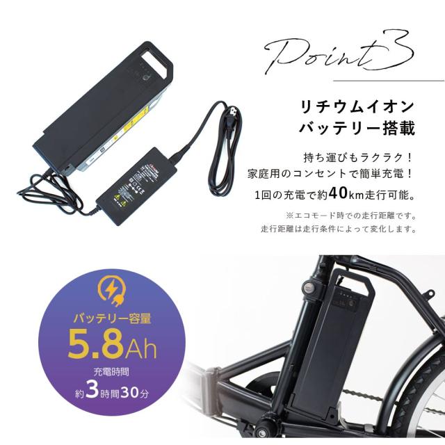アシスト切替 :3モード(エコ・平坦・坂道)