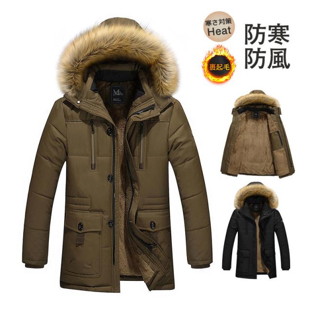 ダウンコート メンズ ロング丈 フード付き ロングダウンコート ロングコート ダウンジャケット 中綿入り ファー付き アウター 大