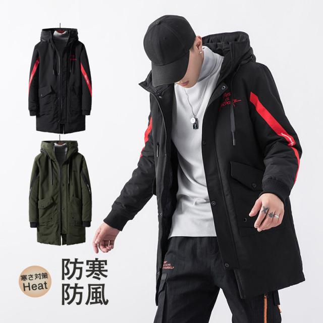 ダウンコート メンズ ロング丈 フード付き 中綿コート ダウンジャケット ミリタリー アウター コートブルゾン パンク風 防寒 大