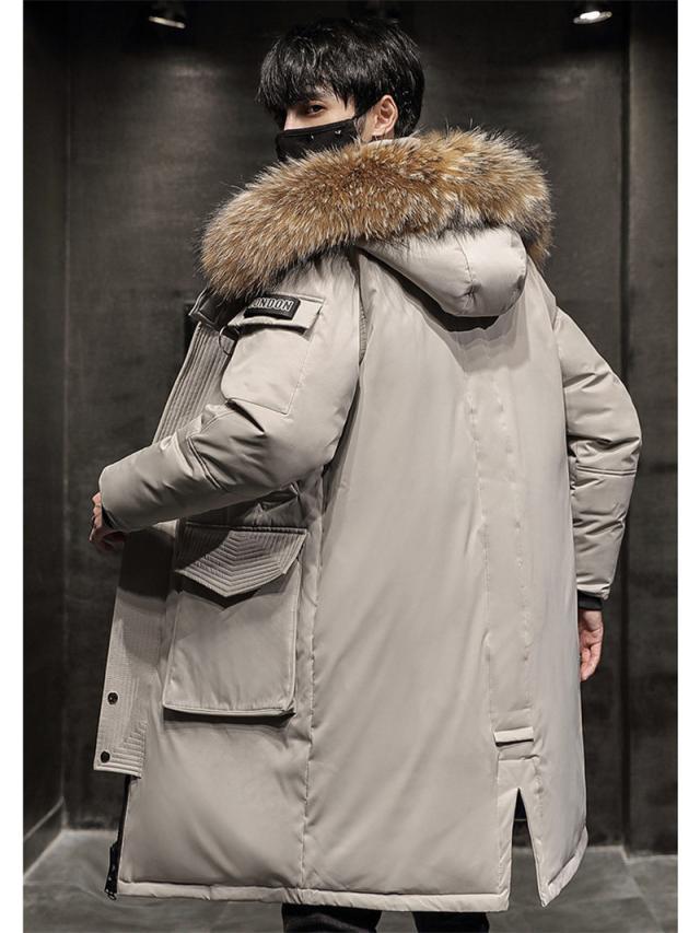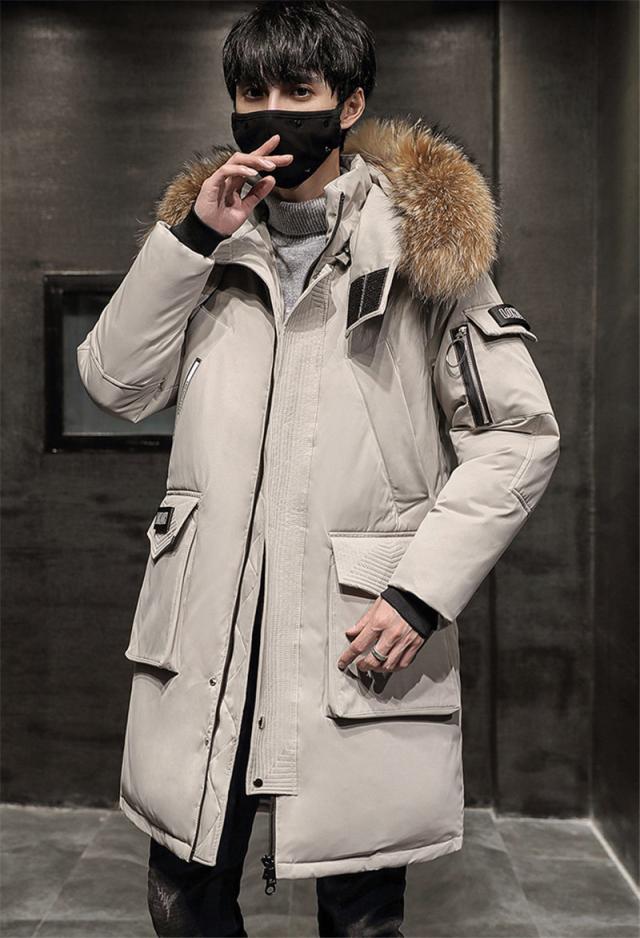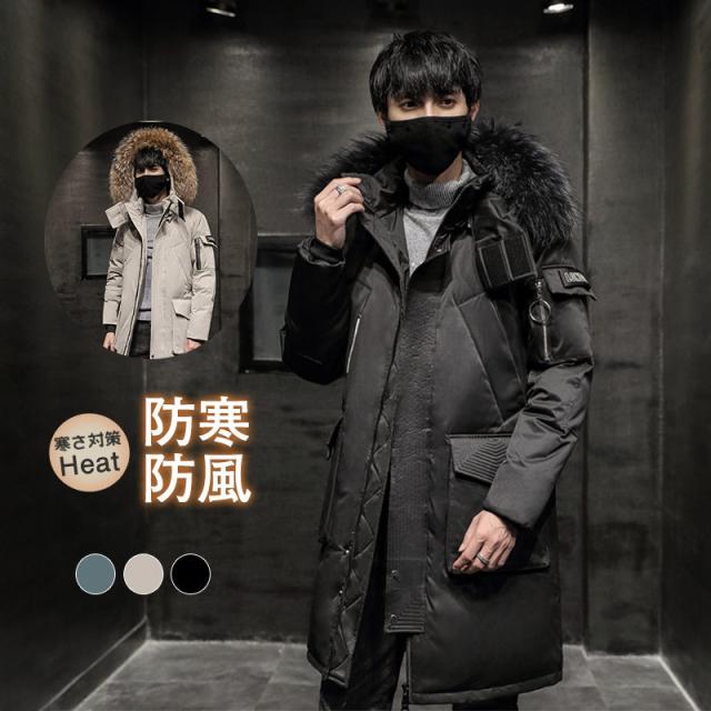 ダウンコート メンズ ロング丈 フード付き ロングダウンコート フェイクファー ジャケット ダウンジャケット 中綿コート アウター