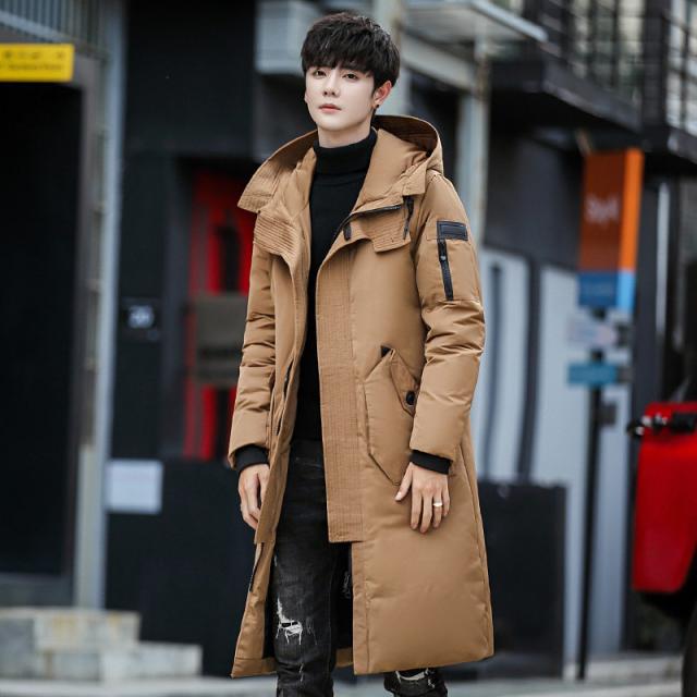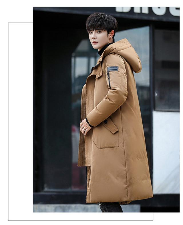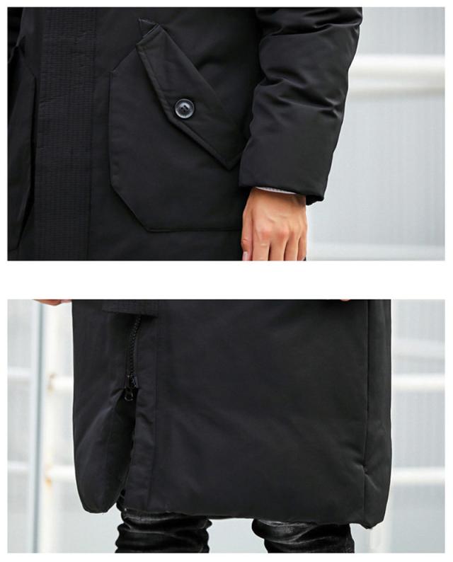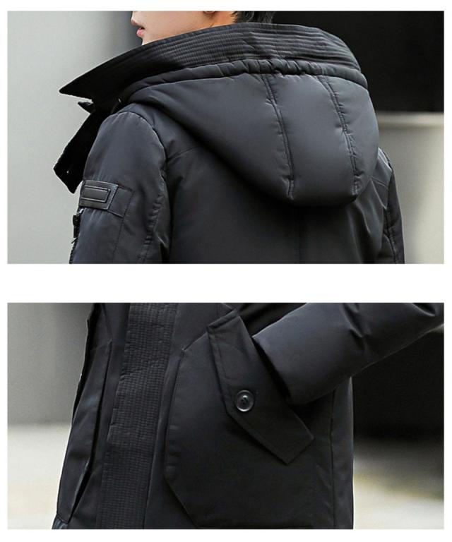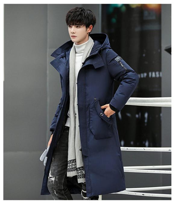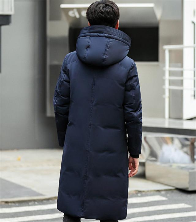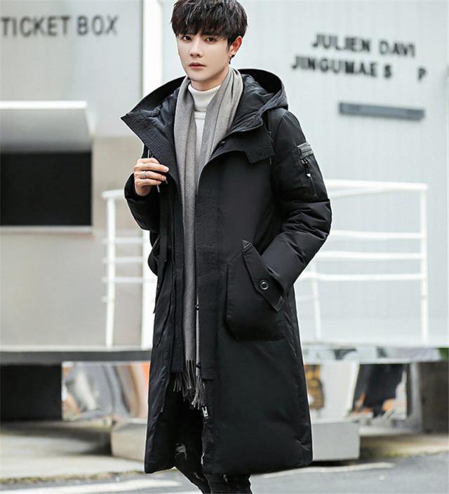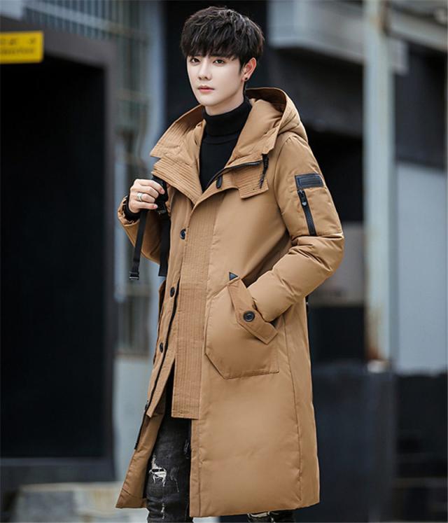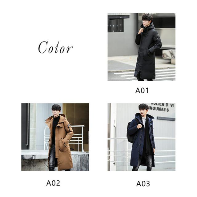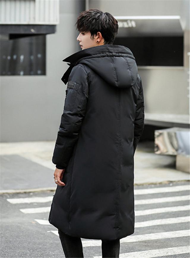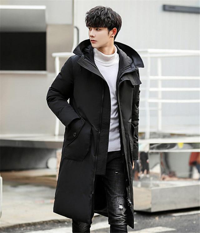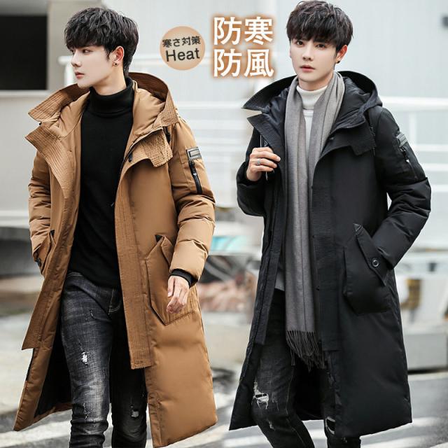 ダウンコート メンズ ロング丈 フード付き ポケット付き 秋冬 厚手 フェザー 冬アウター 防寒 防風 素地 冬服 保温 ハイネッ